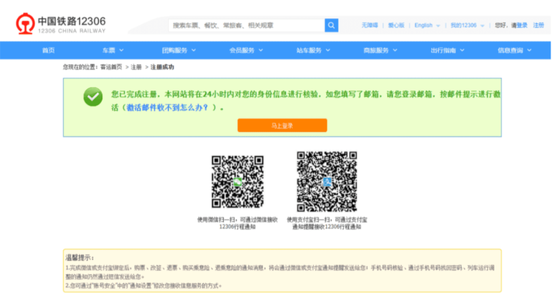 Every user may receive an activation email from 12306@rails.com.cn and activate the account by clicking the link according to email instructions.