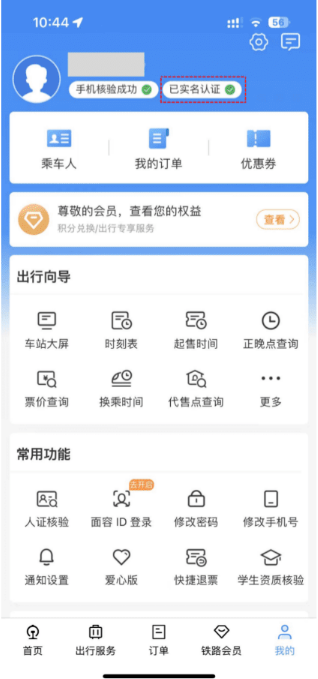 Users can log in to the 12306 China Railway App and check the current status of their identity review in the "Me" (我的)section. Users who have passed the identity verification will see "Authenticated" (已實(shí)名認(rèn)證)while those who failed to pass the identity verification will see "Unauthenticated" (未實(shí)名認(rèn)證)displayed on their account.