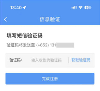 App – Verification with a mobile phone number in Hong Kong, Macao or Taiwan