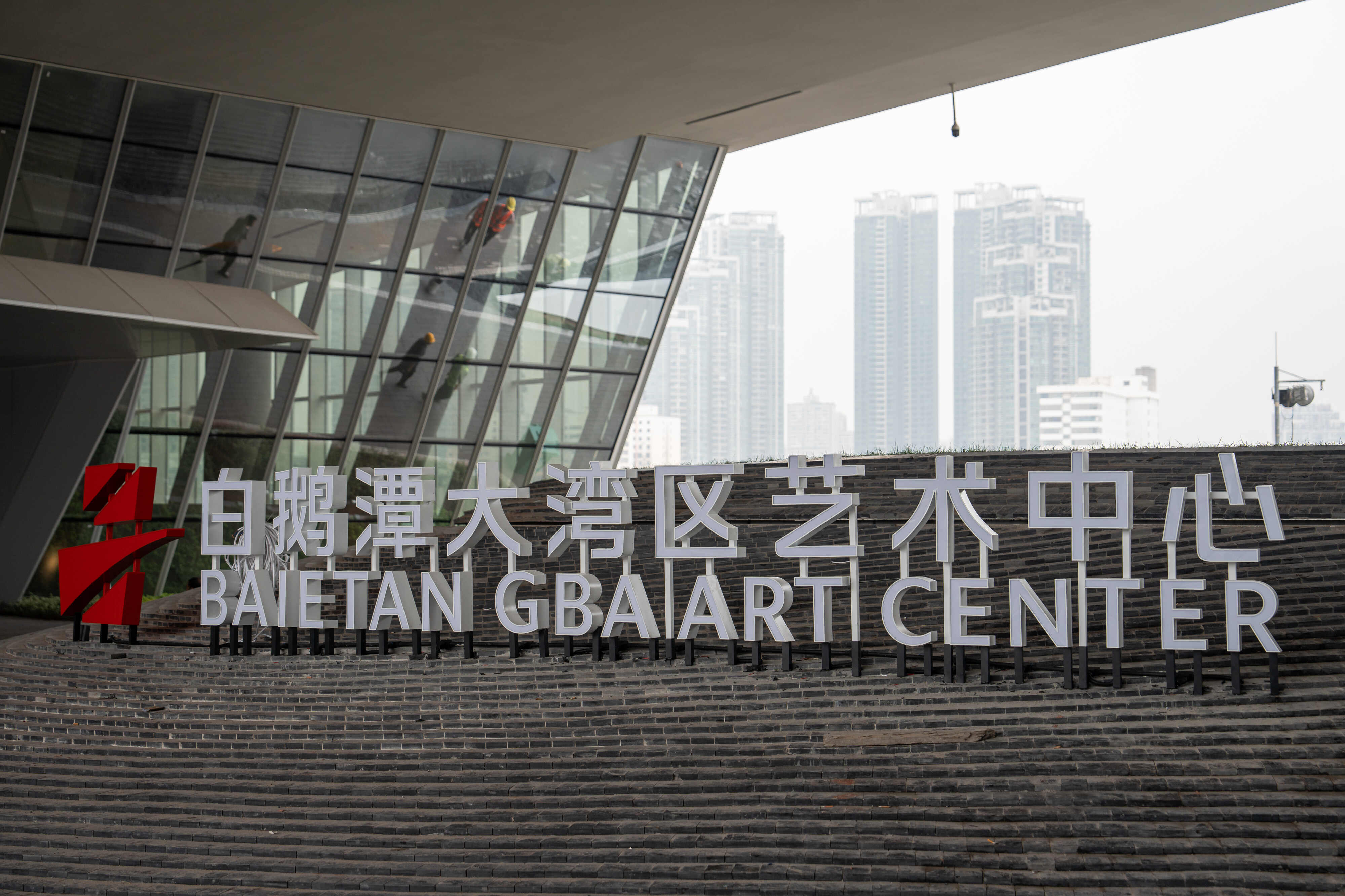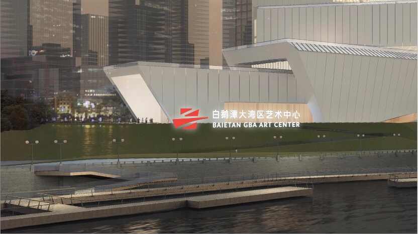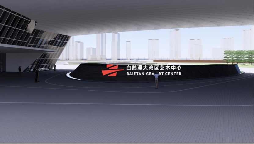 Meanwhile, the logo's design forms a unique combination of the Chinese characters "藝" and "粵". "藝" represents the fusion of art within the Greater Bay Area, where cultural exchanges converge between different regions and internationally. "粵" signifies the central location of the Bai'etan GBA Art Center in the heart of Guangdong's provincial capital, symbolizing the core of the city where the venue is situated.